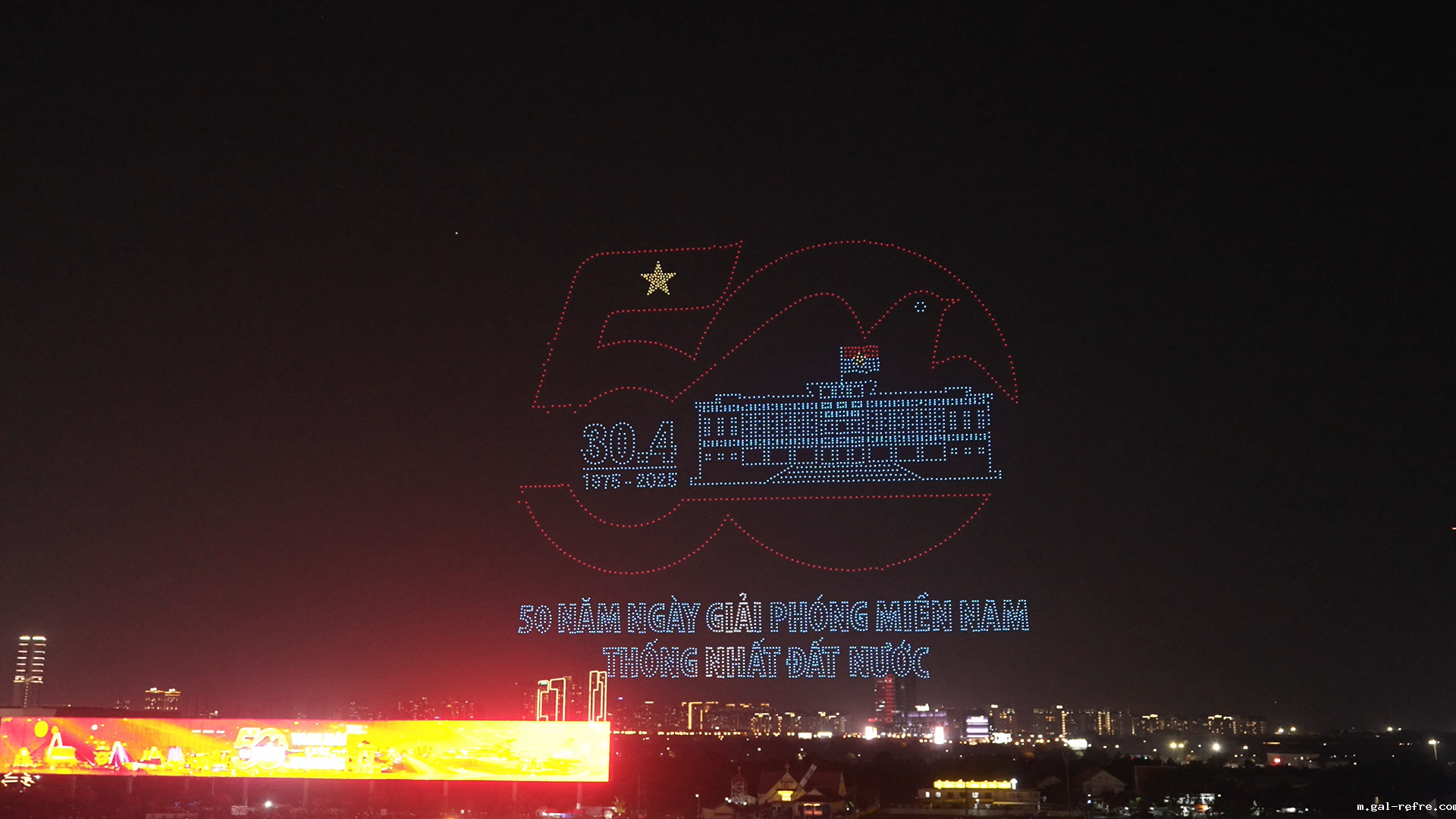 随着起飞指令的下达,万架无人机震撼腾飞,完美呈现出“越南南方解放场景”“越南南方解放与国家统一纪念标志”“胡志明市蓬勃发展城市形象”“越南·奋起新纪元”“三大工程项目设计造型”等凸出越南解放日主题和国家形象的画面内容。这场无人机盛事,不仅刷新了人们对夜空想象的边界,更让世界看到了中国科技的力量。